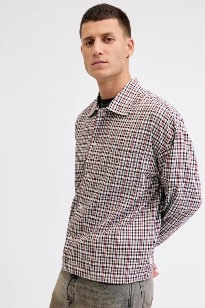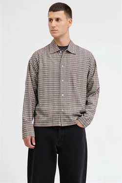 Skjorten har en løs pasform og lange ærmer, hvilket giver en behagelig og afslappet følelse. Den er lavet af 100% økologisk bomuld, hvilket sikrer en blød og naturlig kvalitet. Stoffets rutemønster tilføjer et klassisk touch, der gør skjorten velegnet til både hverdag og mere formelle lejligheder.