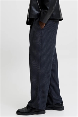 Chinoen Bamford er et tidløst valg, der fungerer som et smart-casual alternativ til jeans. Bukserne har en bred pasform med høj talje og rummelige ben, hvilket sikrer både komfort og stil. Materialet er vævet og robust, hvilket gør bukserne holdbare uden at strække sig. Farven er en dyb navyblå med fine detaljer, der giver et diskret, men stilfuldt udtryk.