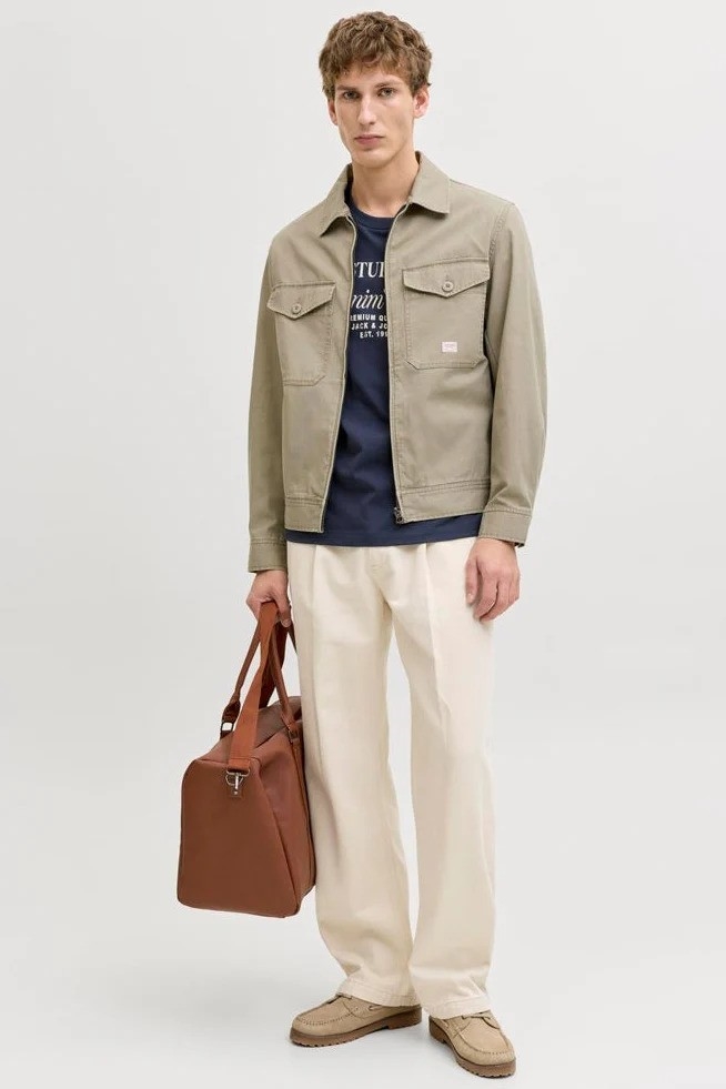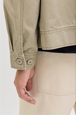 Denne jakke kombinerer et klassisk design med praktiske detaljer og er ideel til hverdagsbrug. Den har en kort længde og er fremstillet i stærkt og holdbart vævet bomuld, som ikke strækker sig som strikkede tekstiler. Jakken har en spredt krave og lange ærmer med knapmanchetter for et tidløst udtryk. Lukkes med lynlås og er udstyret med brystlommer med knaplukning, hvilket gør den både funktionel og stilfuld. Et diskret badge tilføjer et ekstra detaljefokus.