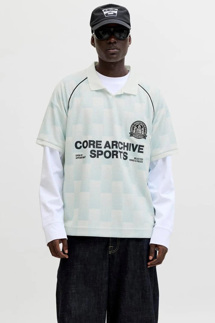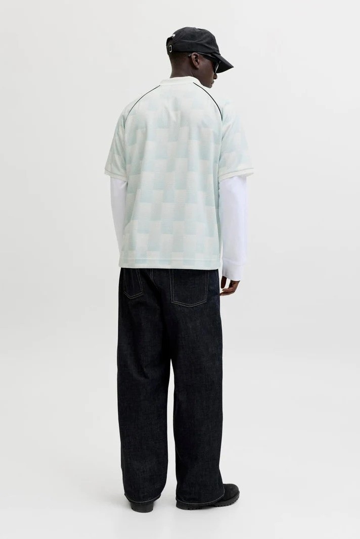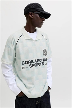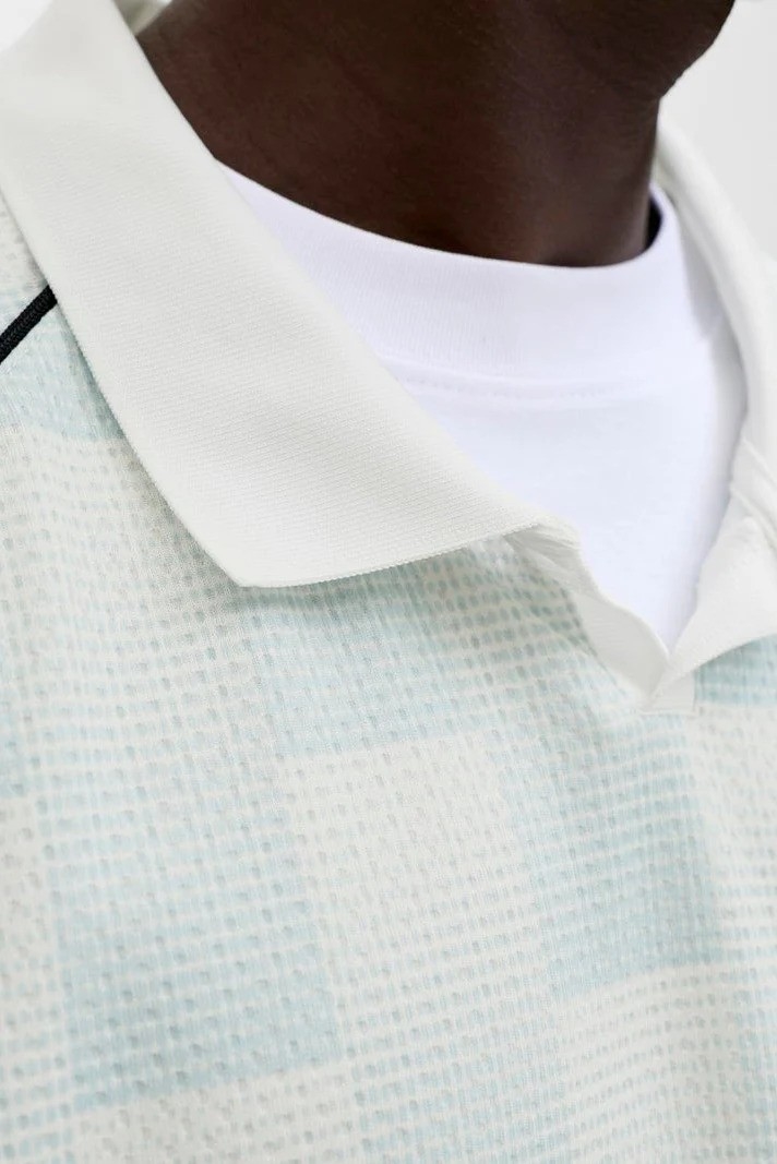 En cool og afslappet t-shirt med kort ærme og polo-krave, der giver et let og behageligt look. T-shirten har en løs pasform og er designet med et all-over print, som giver den et unikt og moderne udtryk. Den er fremstillet af 100% polyester, hvilket gør den let og behagelig at have på.