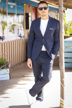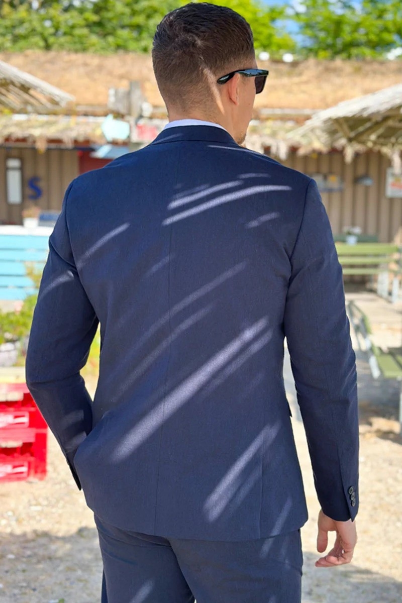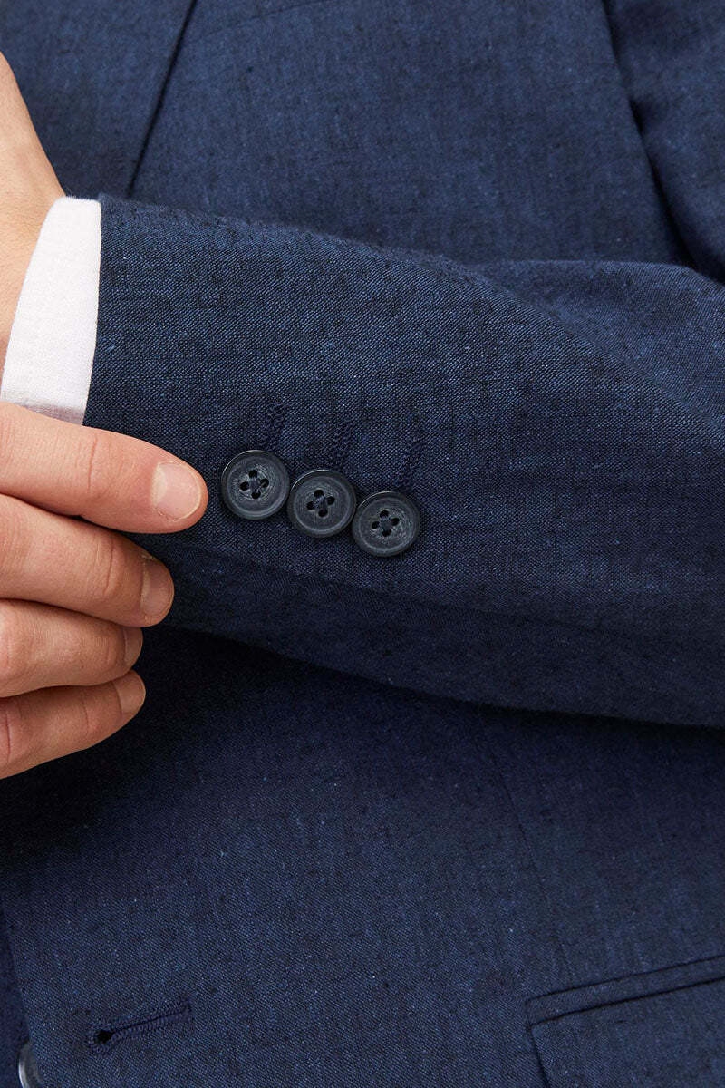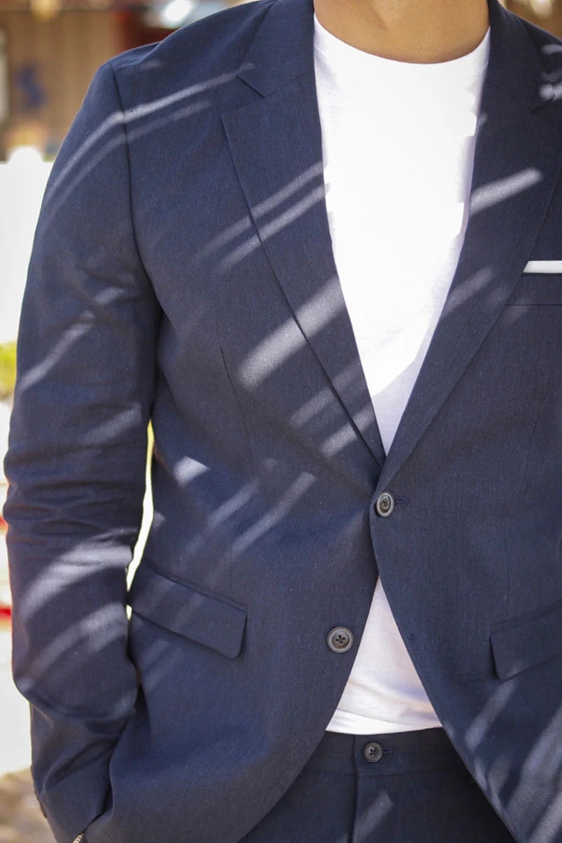 Mørkeblå hør blazer i slim fit