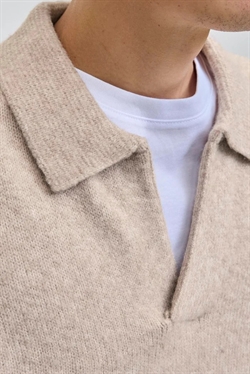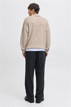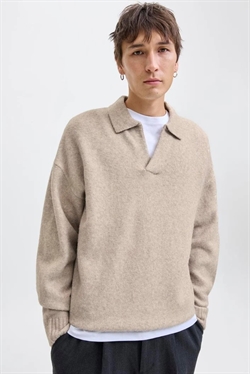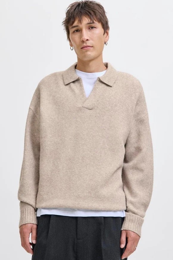 Denne pullover har en afslappet pasform og kombinerer komfort med en tidløs, casual stil. Den er strikket i et fladt strik, som giver både fleksibilitet og behagelighed. Med sit split-halsudsnit og lange, tilpassede ærmer er den velegnet til efterårssæsonen. Pulloverens lysegrå farve tilfører et neutralt, alsidigt look, som er let at style til forskellige outfits.