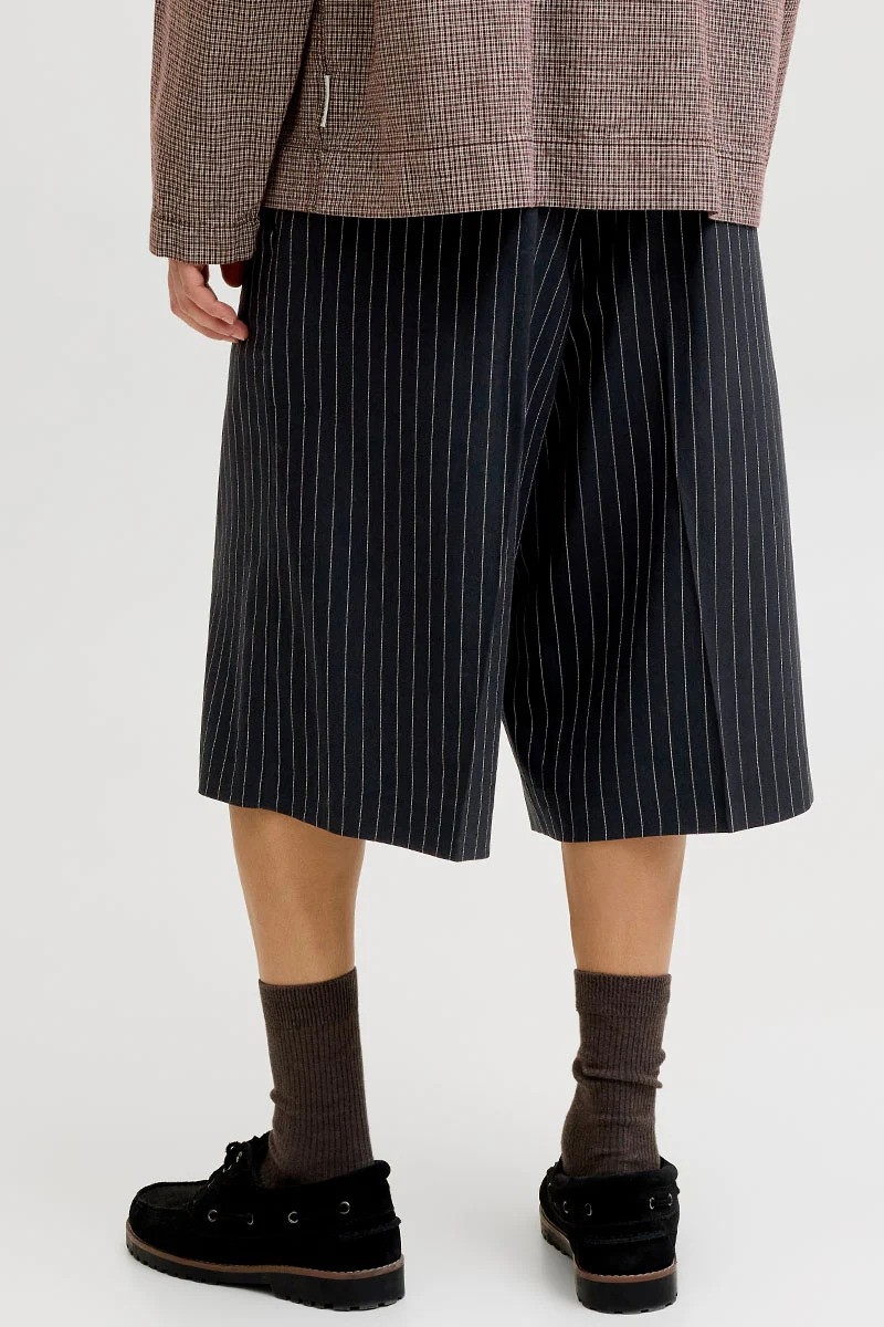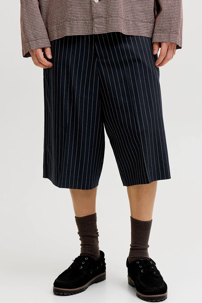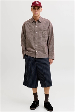 Disse chinoshorts byder på et tidløst og smart-casual look, der er ideelt til varmere vejr. Fremstillet i en vævet, slidstærk kvalitet, som ikke strækker sig som strikkede stoffer, sikrer de komfort og holdbarhed. Shortsene har en høj talje og en løs, baggy pasform, hvilket giver både stil og bevægelsesfrihed. Designet inkluderer praktiske lommer foran og bagpå samt bæltestropper for nem tilpasning.