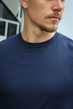 T-shirten er lavet i 100 % kæmmet og enzymvasket bomuld, hvilket gør den blød, slidstærk og behagelig at have på. Stoffet er single jersey med en glat og ensartet overflade, som holder sig flot vask efter vask.