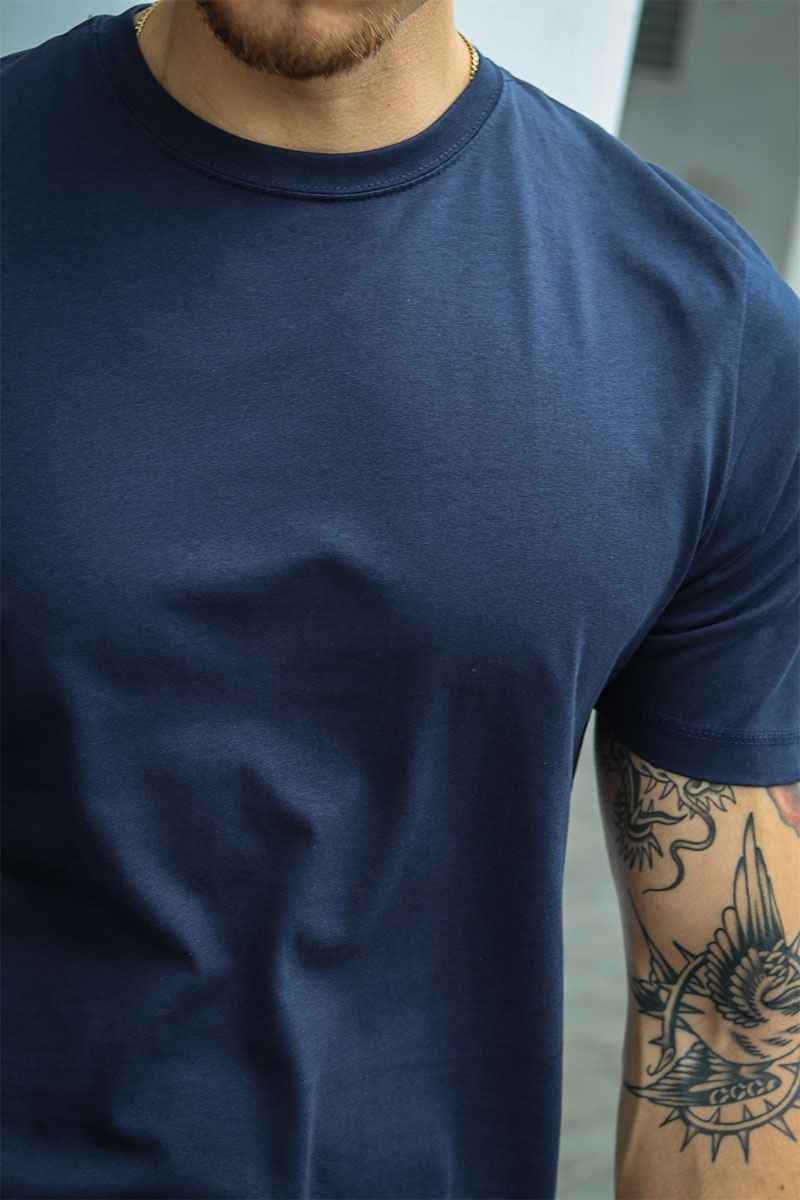 T-shirten har et let figursyet snit med sidesømme og tilpassede ærmer for en moderne pasform. Den er LABELFREE med kun en lille størrelseslabel i venstre side af nakken.