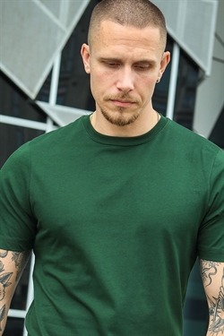 T-shirten er lavet i 100 % kæmmet og enzymvasket bomuld, hvilket gør den blød, slidstærk og behagelig at have på. Stoffet er single jersey med en glat og ensartet overflade, som holder sig flot vask efter vask.