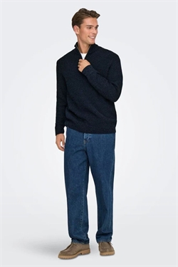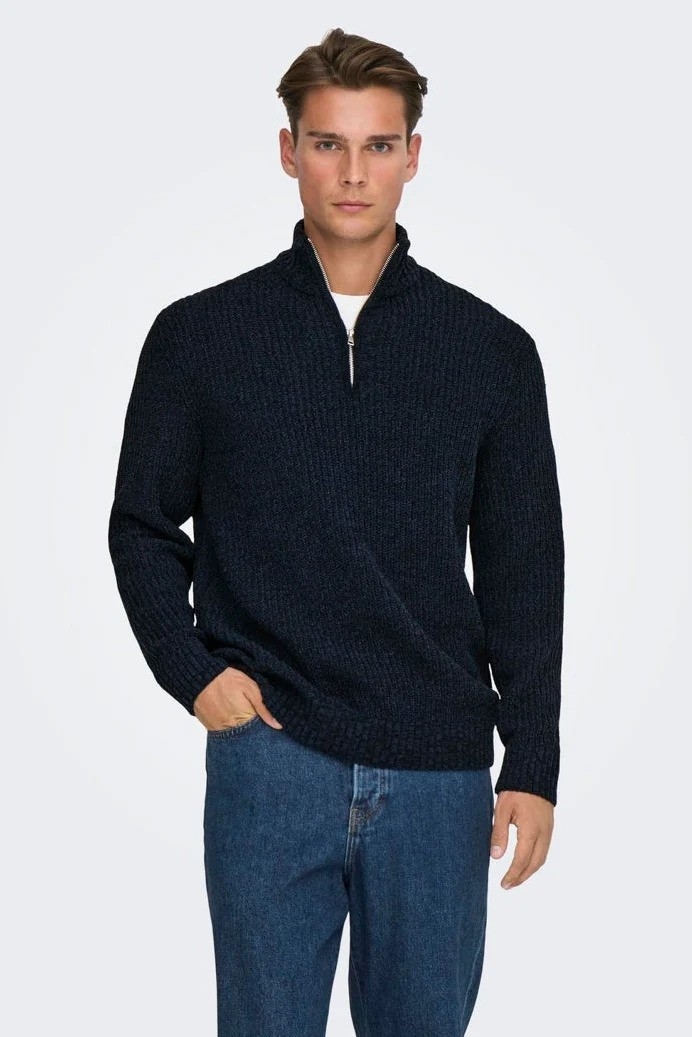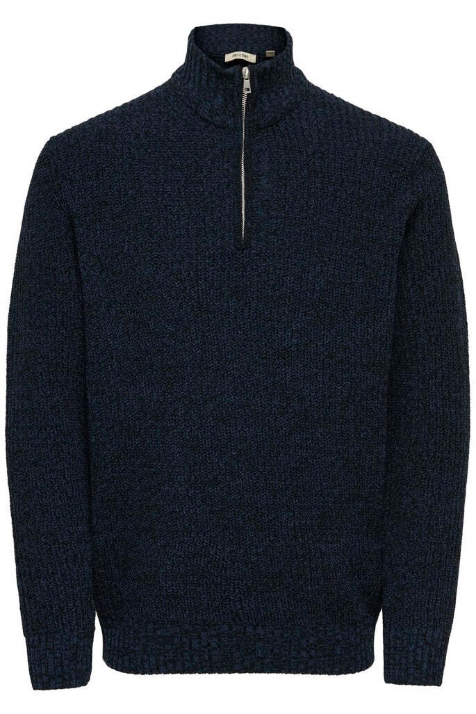 Denne pullover har en behagelig regular fit, der passer perfekt til vinterens kolde dage. Den bløde strukturstrik med et bredt udvalg af mønstre og strukturer giver et stilfuldt og rent look. Med en klassisk crew neck og lange ærmer samt en praktisk halv lynlås er den både funktionel og moderne. Pulloveren er fremstillet af 50% polyester og 50% genanvendt polyester, hvilket gør den til et bæredygtigt valg.