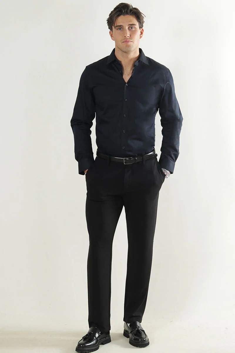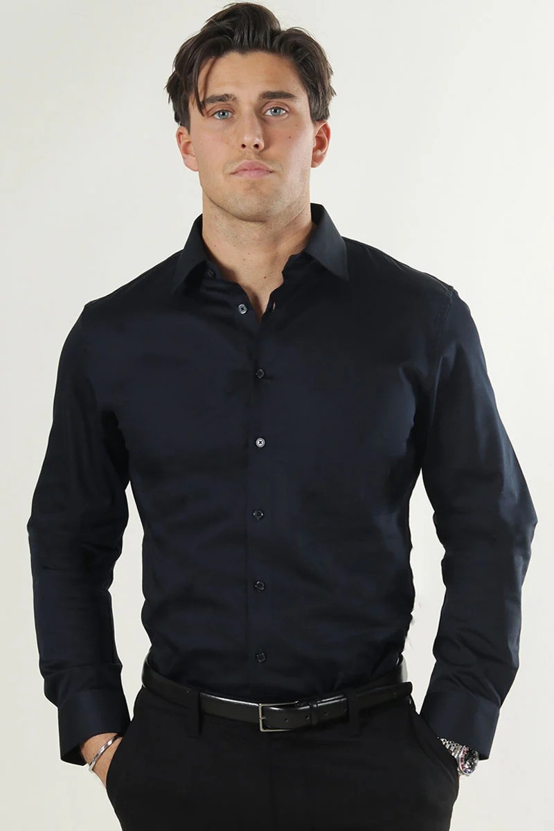 Skjorten er lavet i et blødt, åndbart og fleksibelt materiale og den kommer i slim-fit