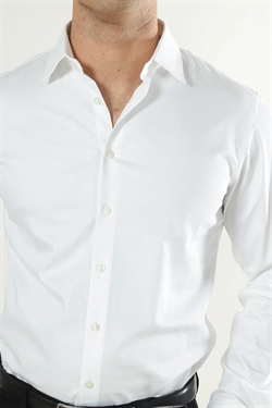 Skjorten er lavet i et blødt, åndbart og fleksibelt materiale og den kommer i slim-fit