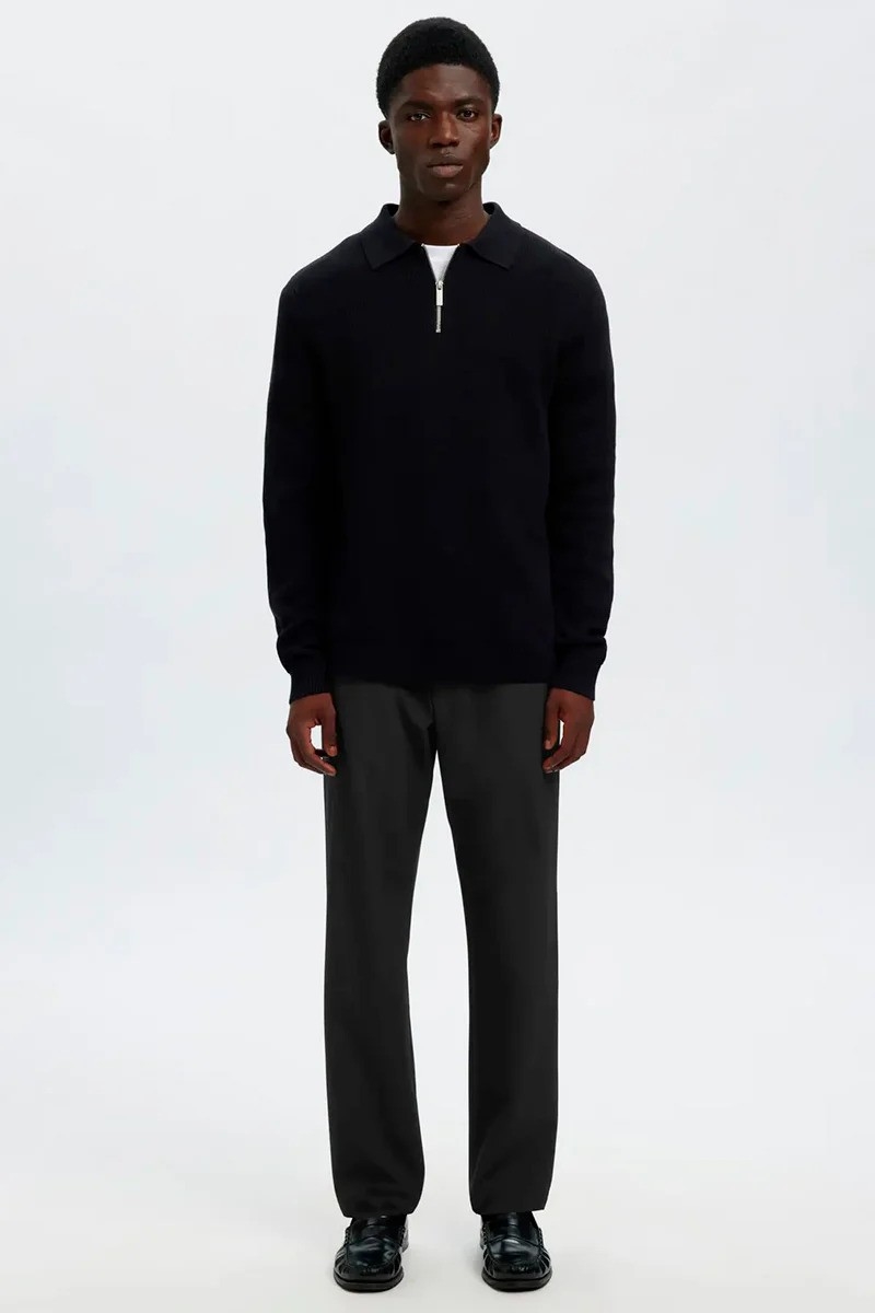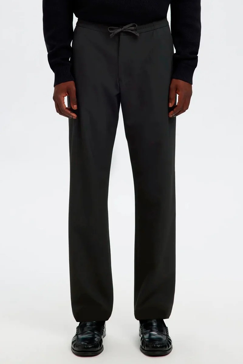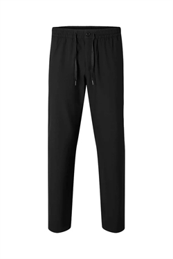 Bukserne har elastisk linning, lukkes med lynlås og knap og har snører til justering i livet
